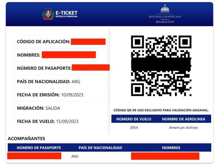 The e-Ticket is a document issued by the government of the dominican republic for the control of entry and exit from the country.